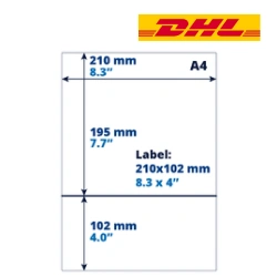 Bolla di consegna A4 / etichette per il reso DHL, 102mm x 210mm, 100 fogli